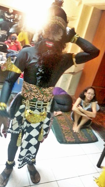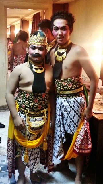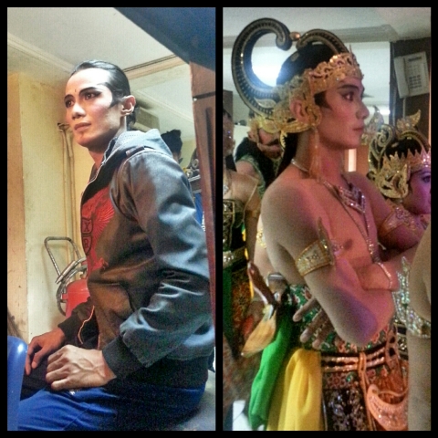 Saya bertemu dengan penari senior, Pak Tyo. Setelah ngobrol, beliau mempersilahkan kami untuk melihat bagaimana mereka mempersiapkan diri dibalik layar.