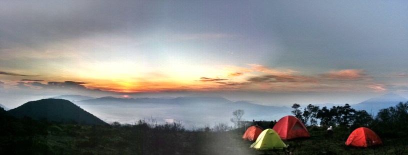 Hujan menggagalkan imajinasi kami untuk mengamati bintang-bintang di malam hari karena hujan terus saja turun sampai nyaris subuh namun pagi ini kami disambut oleh matahari yang terbit diantara kabut-kabut.
