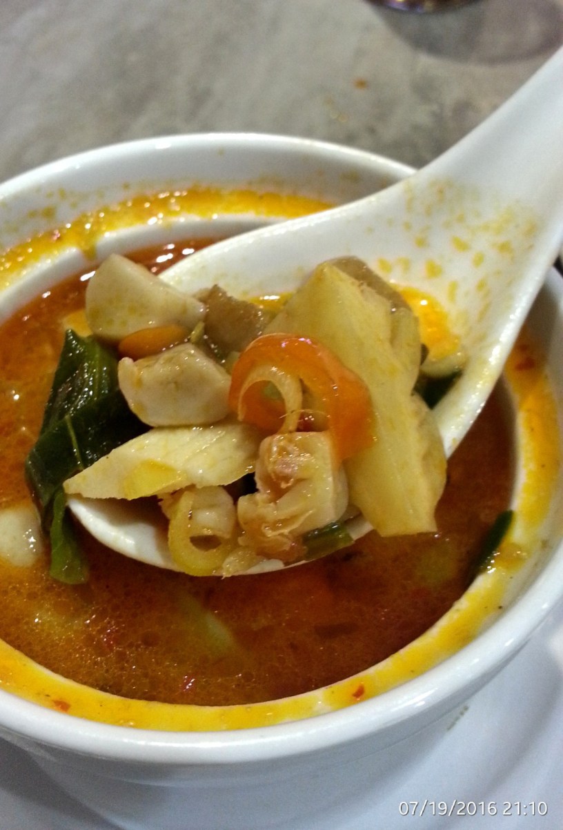 Potongan daun sereh dan irisan tipis jahe juga sedikit banyak mengganggu proses menikmati Tom Yam… lagi enak-enaknya, eh yang dikunyah ternyata daun sereh… 😅