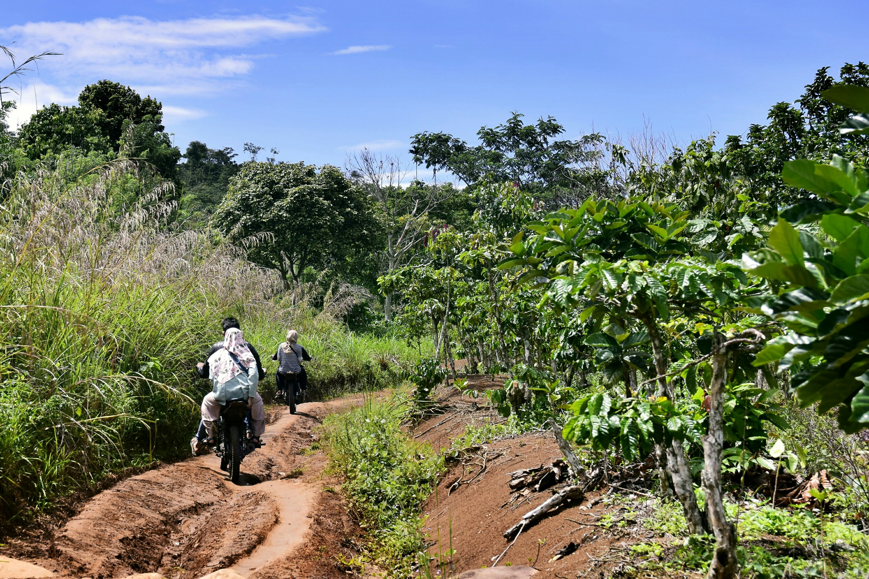 Setelah berbincang sejenak dengan para pandita Hindu Bali, kami kembali melanjutkan perjalanan menuju si air terjun. Perjalanan kami tidak sepenuhnya menggunakan mobil, sesampainya di rumah singgah, kami berganti moda transportasi yakni dengan motor.
