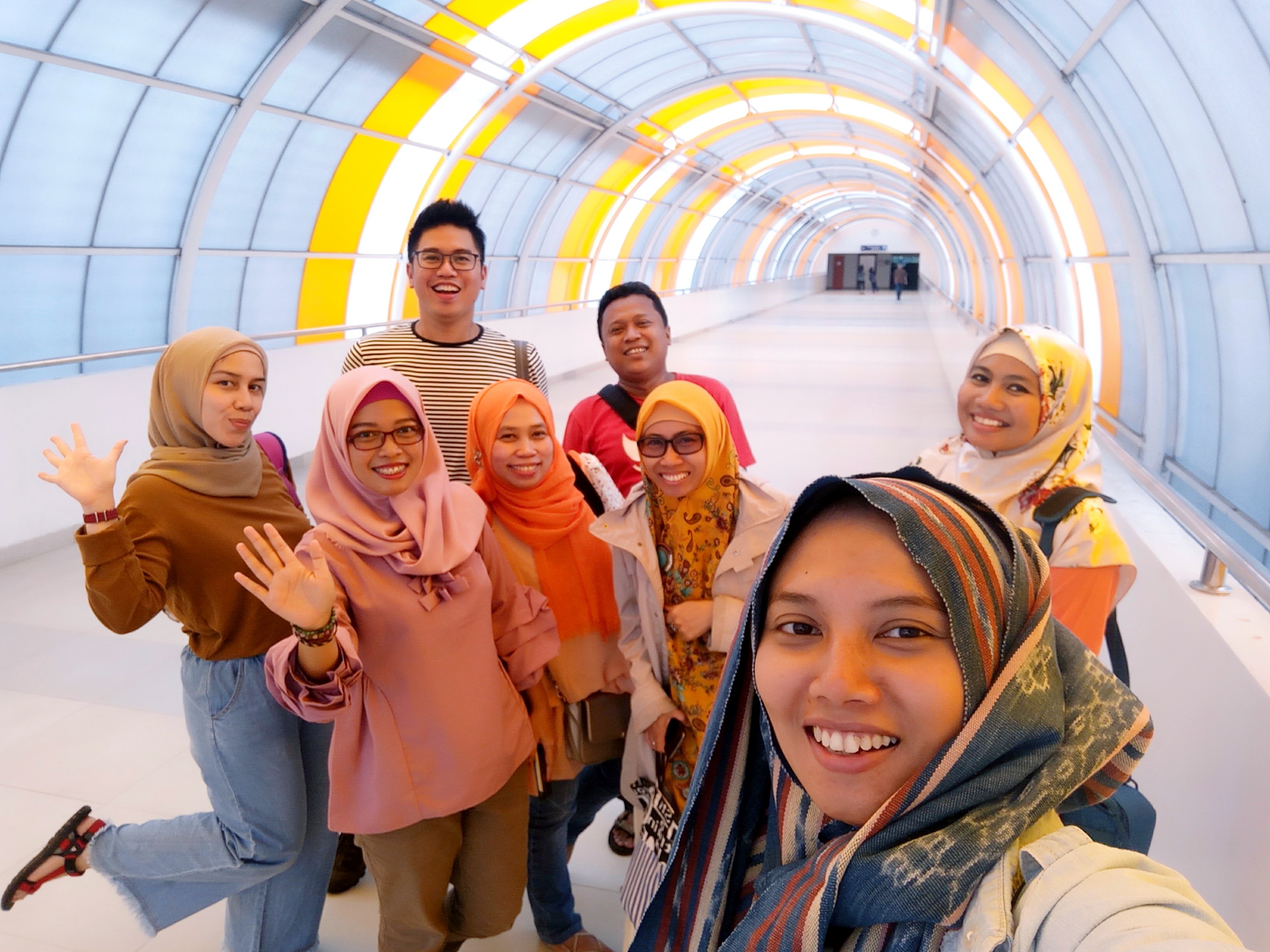Sengaja kali itu kami menjadwalkan tiba di Bandar Udara Radin Inten II pagi hari, namun pesawat Mbak Katerina mengalami kerusakan mesin sehingga keberangkatannya ditunda. Ya, kami memang tidak berangkat berbarengan karena titik keberangkatan kami yang berbeda-beda. Mbak Katerina dari Bandung dengan menggunakan pesawat baling-baling, Mbak Dian berangkat dari Yogyakarta transit di Cengkareng. Saya, Cak Mok, Frida, Zaki, Savie, Zen dan Mbak Samsiah dari Cengkareng.