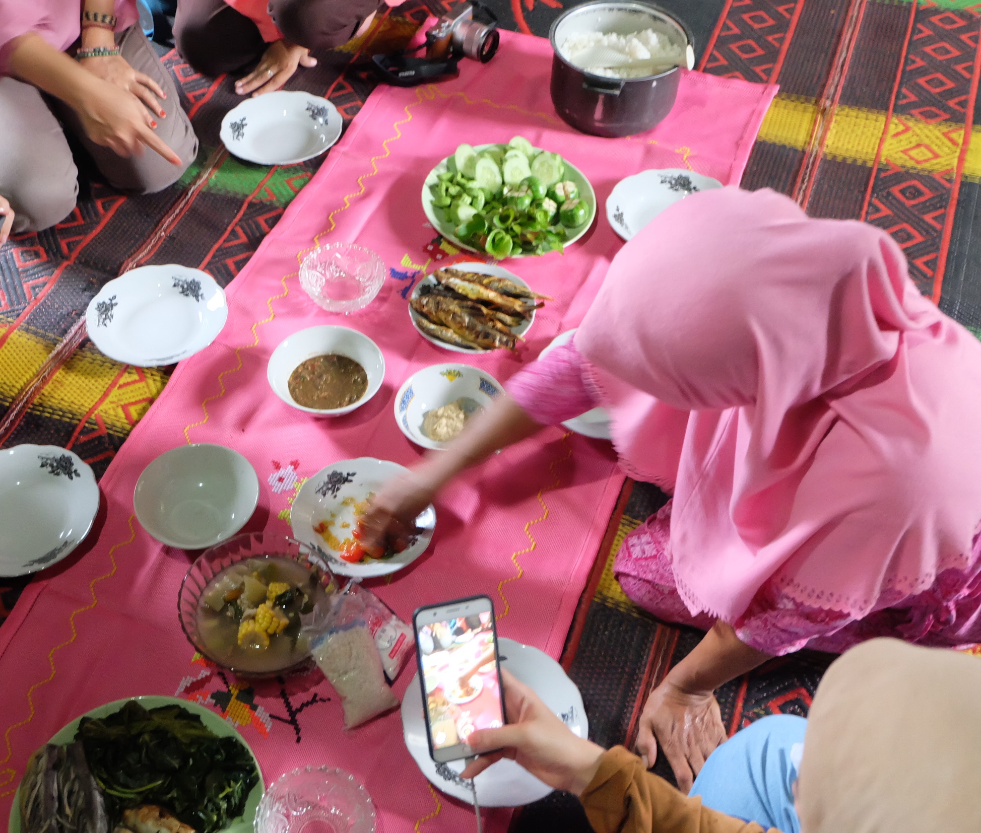 Kami sampai sekitar pukul 15.00 WIB, dan langsung disambut dengan rintik gerimis, pijok-pijok, seruit, ikan goreng dan lalap dirumah pak kepala desa, kelezatan makanan sederhana ini membuat suasana mendadak hening, semua fokus pada piring masing-masing.
