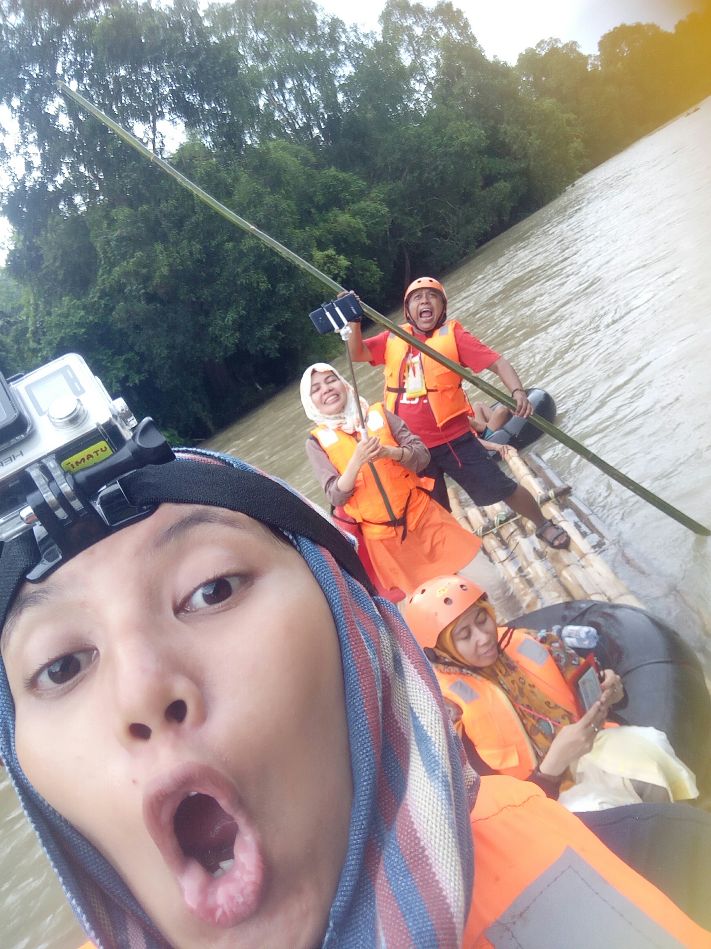 Foto di atas rakit dengan mulut monyong kayak gitu menarik banget deh wkwkwk