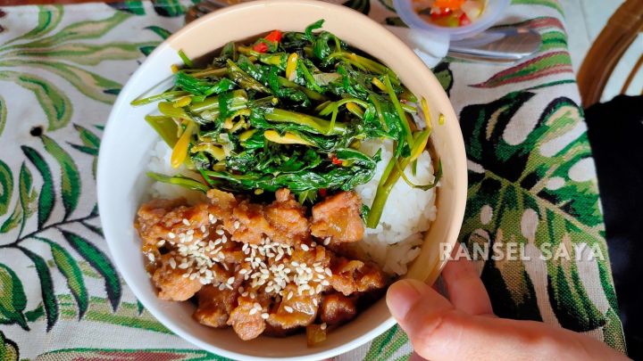 Buat kami, ukuran rice bowlnya cukup banyak, nasi dengan toping sayur pepaya – kangkung, ikan/ayam dengan pengolahan yang berbeda pada tiap mangkuknya. Cemilannya juga oke banget rasanya. Tidak ada makanan yang mengecewakan lidah kami. Harganya pun ramah di kantong sehingga pas banget untuk budget anak kuliahan.