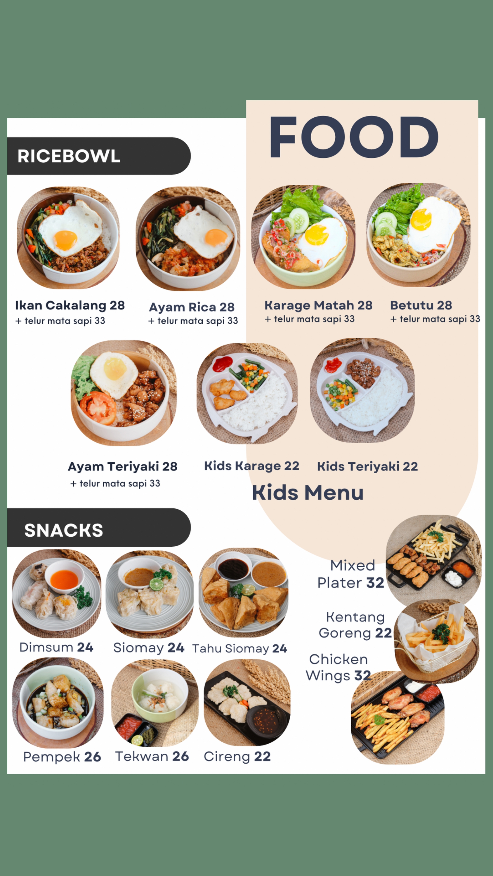 Buat kami, ukuran rice bowlnya cukup banyak, nasi dengan toping sayur pepaya – kangkung, ikan/ayam dengan pengolahan yang berbeda pada tiap mangkuknya. Cemilannya juga oke banget rasanya. Tidak ada makanan yang mengecewakan lidah kami. Harganya pun ramah di kantong sehingga pas banget untuk budget anak kuliahan.